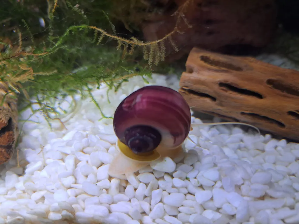 Magenta Mystery Snails bring a vibrant pink shell, peaceful behaviour, and amazing plant-safe algae cleaning to any aquarium.